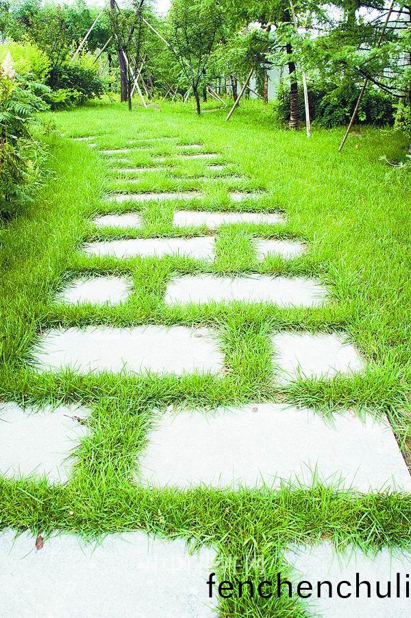 ▲用草(cao)皮(pi)鑲嵌(qian)的(de)蘤(hua)崗巗汀(ting)步(bu)