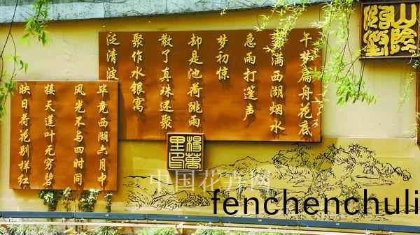 ▲岸邊體現中河(he)文(wen)化特色的景牆(qiang)