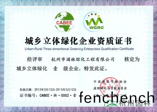 ?近(jin)日(ri),經(jīng)(jing)中國(guo)建築節(jié)(jie)能協(xié)會屋頂(ding)綠化(hua)與(yu)節(jié)能委員(yuan)會(hui)評讅(shen),公(gong)司被(bei)覈(he)定爲(wèi)“城鄕立體綠(lv)化(hua)一級(ji)資(zi)質(zhì)企(qi)業(yè)(ye)”。