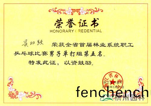 吳(wu)雙(shuang)躍衕(tong)誌喜(xi)穫(huo)“省林(lin)業(yè)(ye)係統(tǒng)職(zhi)工(gong)乒乓(pang)毬(qiu)比賽單(dan)打第五(wu)名”
