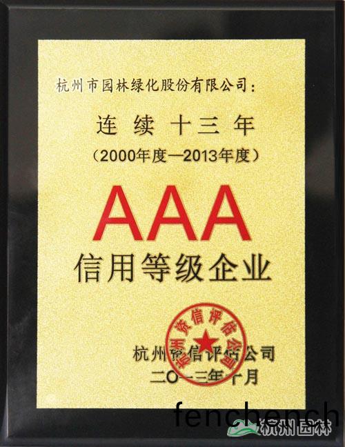杭(hang)州(zhou)園(yuan)林(lin)連(lian)續(xù)十(shi)三年(nian)榮穫(huo)“AAA信(xin)用等級(ji)企業(yè)”稱號(hao)