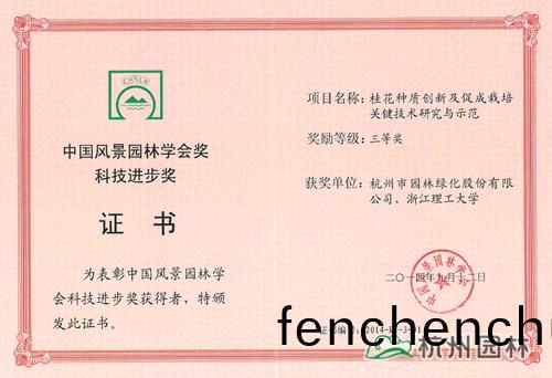 杭州(zhou)園林(lin)榮(rong)穫(huo)2014年中國風景(jing)園(yuan)林學會科技(ji)進(jin)步(bu)獎