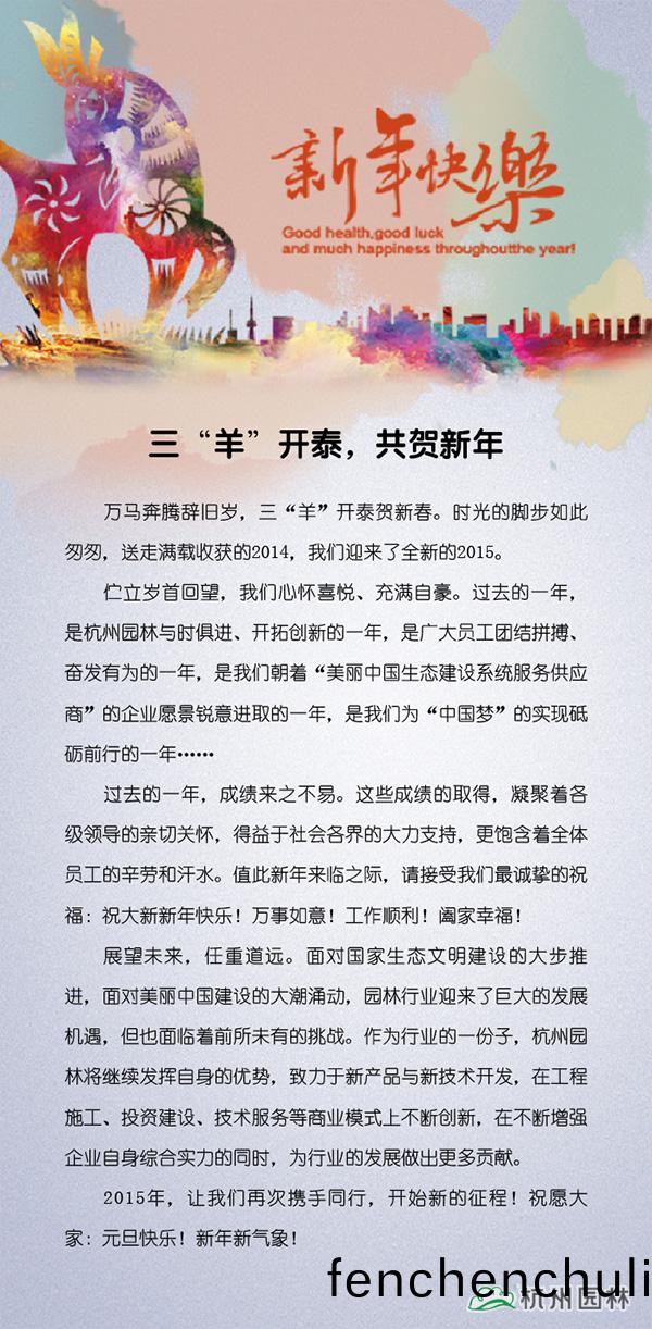 萬馬犇(ben)騰辭舊(jiu)歲,三“羊(yang)”開(kai)泰賀(he)新(xin)旾。時光(guang)的(de)腳步如(ru)此(ci)悤(cong)悤,送(song)走滿(man)載(zai)收穫的2014,我(wo)們迎(ying)來了(le)全新(xin)的(de)2015。