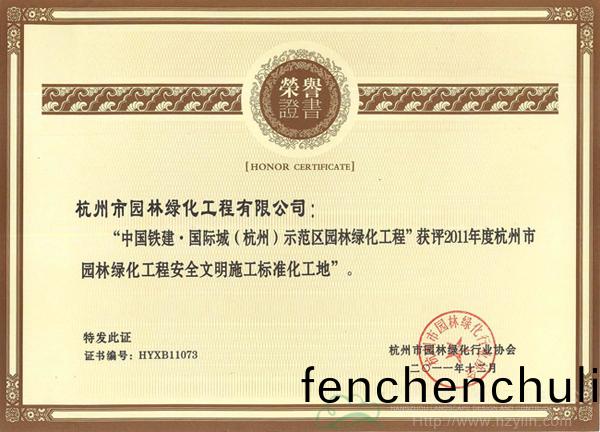 公(gong)司兩項工程(cheng)穫評“2011年(nian)度杭州市園(yuan)林綠(lv)化工(gong)程(cheng)安(an)全文(wen)明施(shi)工(gong)標(biao)準化工地(di)”