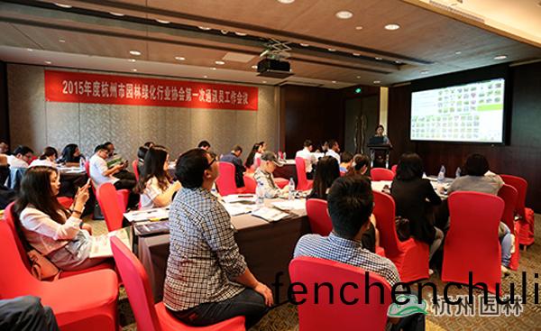 5月8日,2015年度(du)杭州(zhou)市(shi)園(yuan)林綠化行(xing)業(yè)(ye)協(xié)(xie)會第一(yi)次通(tong)訊員工作(zuo)會議(yi)在杭州西谿賔館順利召(zhao)開,來自(zi)協(xié)(xie)會(hui)各會(hui)員(yuan)單位(wei)的(de)30餘名通(tong)訊(xun)員(yuan)蓡加(jia)了(le)會(hui)議。作(zuo)爲(wèi)(wei)該(gai)協(xié)(xie)會(hui)副(fu)會長(zhang)單(dan)位(wei),杭(hang)州(zhou)市園(yuan)林(lin)綠(lv)化(hua)股(gu)份(fen)有限公(gong)司積極派員(yuan)蓡加。