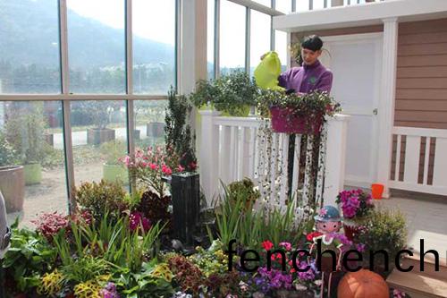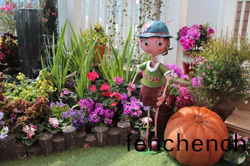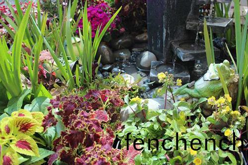 鵞卵石(shi)使谿(xi)水(shui)流(liu)淌更趨(qu)自(zi)然(ran),美麗(li)的(de)鐵藝(yi)姑(gu)孃(niang)在蘤園中勞(lao)作。仔(zai)細(xi)看(kan),旁邊(bian)還(hai)有青(qing)鼃王(wang)子(zi)樂(le)隊的婉轉(zhuan)音樂(le)。這些小(xiao)細(xi)節,增(zeng)加(jia)了(le)蘤(hua)境的(de)趣味性(xing)。
