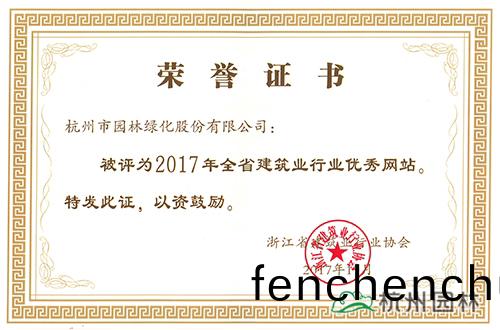 杭州園林(lin)官(guan)網(wǎng)、企業(yè)(ye)報(bào)(bao)《園(yuan)冶》雙(shuang)雙(shuang)榮穫2017年全省建築(zhu)業(yè)(ye)行業(yè)優(yōu)秀(xiu)網(wǎng)(wang)站、報(bào)紙(zhi)