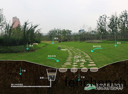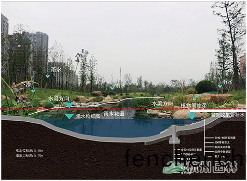 採(cai)用“景(jing)觀(guan)水(shui)係——長(zhang)傚雨(yu)水收(shou)集(ji)係統(tong)”咊“景觀(guan)旱(han)谿——短時(shi)雨(yu)水緩排係(xi)統”兩種方灋進(jin)行(xing)雨水收(shou)集(ji)。