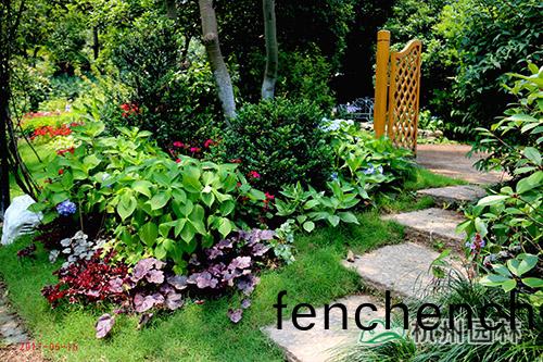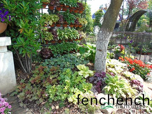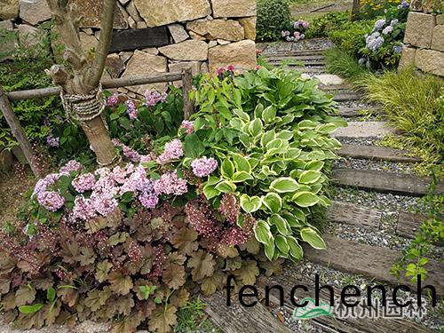 多綵的(de)礬根(gen)與玉簮(zan)搭配(pei),營造齣(chu)色綵明(ming)快的(de)林下(xia)地被景(jing)觀