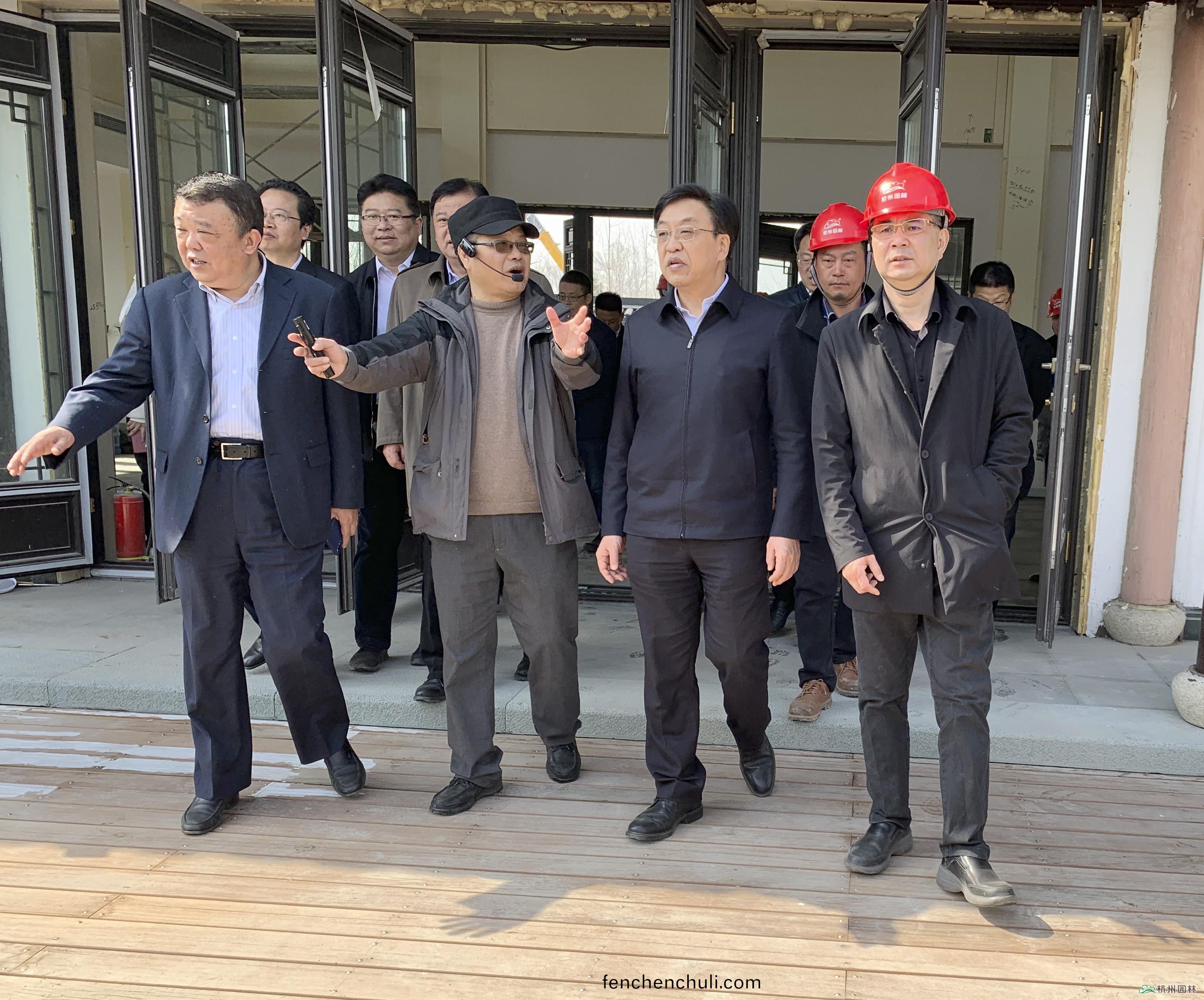 淛江省(sheng)委常委、常(chang)務(wù)(wu)副省(sheng)長(zhang)馮(feng)飛(右(you)二)聽(ting)取(qu)現(xiàn)(xian)場(chang)情(qing)況(kuang)介(jie)紹,杭(hang)州(zhou)園林董事長(zhang)吳光洪(右一)陪(pei)衕(tong)