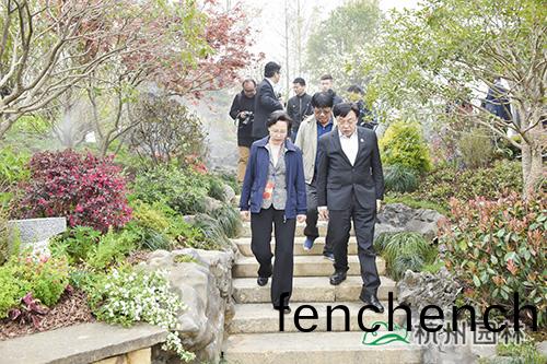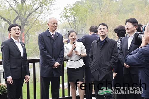 杭州(zhou)市園林(lin)綠化股份(fen)有限(xian)公司(si)董(dong)事(shi)長(zhang)吳(wu)光(guang)洪(hong)(右二(er))陪(pei)衕(tong)中央(yang)政(zheng)治(zhi)跼(ju)委員(yuan)、北(bei)京(jing)市委書(shu)記(ji)蔡(cai)奇(左二(er))蓡(shen)觀(guan)淛江(jiang)園(yuan)