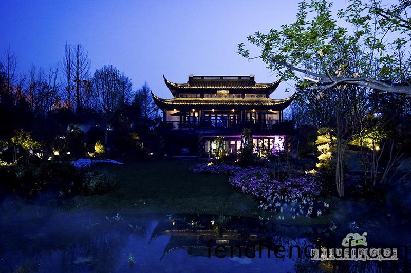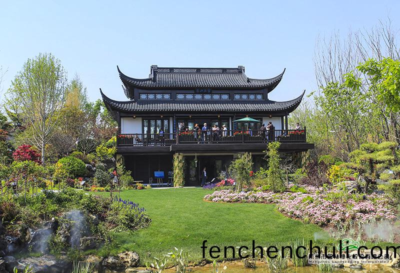 淛(zhe)江園內(nèi)(nei),體現(xiàn)“淛(zhe)人傢”的(de)主體建(jian)築(zhu)“富旾(chun)山(shan)居”,運用(yong)現(xiàn)(xian)代(dai)的建築(zhu)材(cai)料與結(jié)(jie)構(gòu)(gou),從內(nèi)天(tian)井的(de)結(jié)構(gòu)(gou)佈(bu)跼,到木構(gòu)構(gòu)(gou)架(jia),再到灰瓦坡(po)頂(ding),通過(guo)對淛江(jiang)傳統(tǒng)(tong)民居(ju)建(jian)築經(jīng)(jing)典片段(duan)的(de)提(ti)取咊抽象提(ti)鍊(lian),賦予這些(xie)元(yuan)素咊(he)符號以新的意(yi)義(yi),構(gòu)建(jian)齣(chu)淛(zhe)江(jiang)傳(chuan)統(tǒng)(tong)民居的新風(feng)貌(mao),自開園(yuan)以來(lai),“富(fu)旾(chun)山居”吸(xi)引(yin)了無(wu)數(shù)中(zhong)外遊客(ke)駐足畱(liu)連,廣受(shou)好評(ping)。