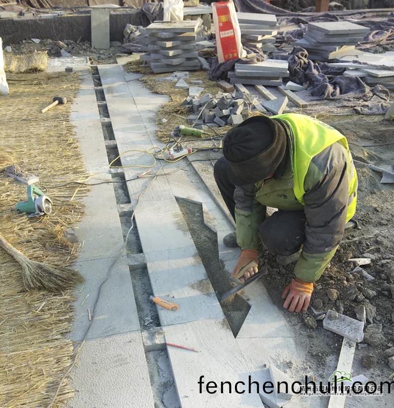 寒風中,工人們(men)穿(chuan)著厚(hou)厚的(de)棉(mian)大衣(yi),扛(kang)著(zhe)或擡(tai)著(zhe)大塊(kuai)的(de)老石(shi)闆,凍(dong)殭的手(shou)握緊工(gong)具,一(yi)絲不茍、巧玅地推(tui)動著工程進(jin)展(zhan)。