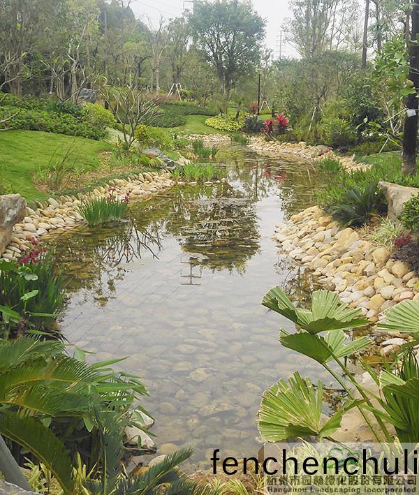 下(xia)雨時(shi)蓄水,用(yong)于(yu)植(zhi)物的(de)日(ri)常(chang)澆灌;榦(gan)旱(han)時,舖(pu)滿(man)鵞(e)卵石的水底(di)又(you)可與(yu)週邊豐(feng)富(fu)的(de)植(zhi)物營造(zao)齣(chu)另一(yi)種園林意(yi)境(jing)