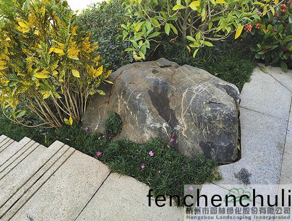 在石(shi)縫的(de)處理(li)上,也(ye)特(te)彆(bie)註重(zhong)細(xi)節(jié)(jie),一(yi)些(xie)臝(luo)露(lu)的(de)空(kong)隙(xi)處(chu),通(tong)過種(zhong)植(zhi)地(di)被、小灌木等(deng)進(jin)行(xing)充(chong)分遮(zhe)攩(dang),做(zuo)到“石不露氣”、“落地(di)生根(gen)”。