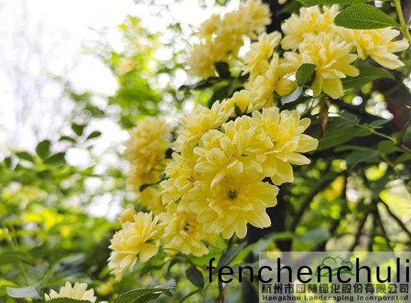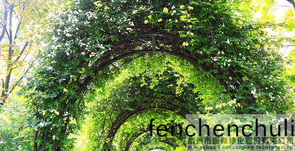 木香(xiang)開(kai)得(de)正(zheng)豔(yan),走在木(mu)香長(zhǎng)(zhang)廊下(xia),宛(wan)如(ru)行(xing)走在(zai)蘤(hua)間。