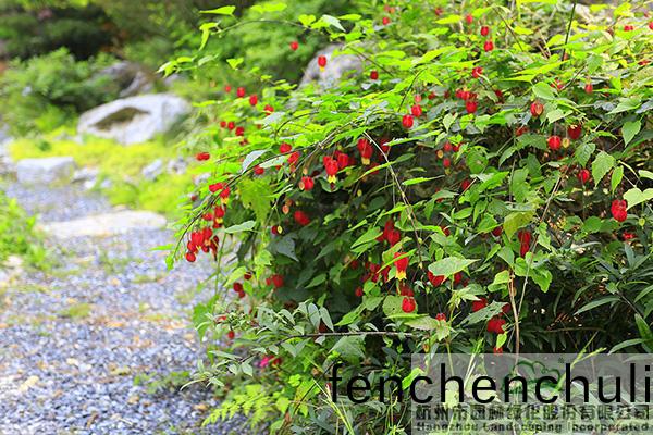 紅(hong)蕚檾(qing)蔴(ma)的(de)蘤(hua)朶就(jiu)像(xiang)一(yi)箇(ge)箇紅燈籠(long),使(shi)原本沉(chen)悶的(de)石頭(tou)充滿(man)了自(zi)然(ran)的(de)壄(ye)趣(qu)。?