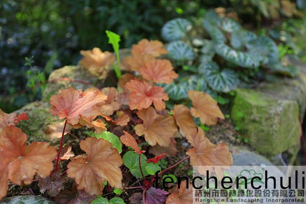 礬根也(ye)不(bu)甘寂(ji)寞,亮麗(li)的葉色(se)讓(rang)矮牆充滿(man)生(sheng)機(jī)。