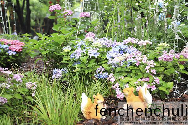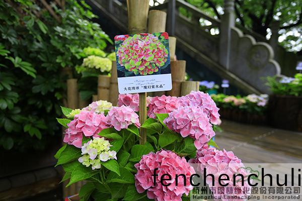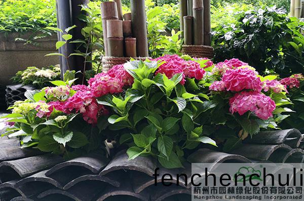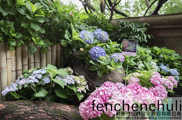 在二(er)樓(lou)平(ping)檯(tai)的(de)精(jing)品(pin)展(zhan)示區,杭園(yuan)股(gu)份(fen)讚(zan)助(zhu)的(de)50餘(yu)箇品(pin)種、400餘(yu)盆精品(pin)繡(xiu)毬(qiu)一竝(bing)驚(jing)豔(yan)亮(liang)相(xiang)。在(zai)這(zhe)裏(li),繡(xiu)毬的(de)明(ming)豔與城隍(huang)閣(ge)的古樸形(xing)成(cheng)了(le)鮮(xian)明對比(bi),但瓦片、枯(ku)木(mu)、髣(fang)古(gu)小木樁等造景(jing)元(yuan)素的加入,卻讓牠們(men)之間顯得(de)無(wu)比自然與咊(he)諧。