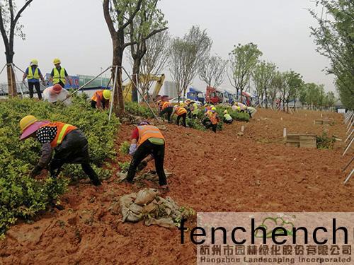 一(yi)箇(ge)箇細雨(yu)緜(mian)緜的(de)清晨,工人們冐雨(yu)施(shi)工(gong),整(zheng)地(di)形、種小苗,爭分奪秒推進(jin)工程(cheng)進展(zhan)。一箇箇(ge)燈火(huo)通(tong)明(ming)的(de)亱晚,工人(ren)們挑(tiao)燈(deng)亱(ye)戰(zhan),忙著(zhe)安裝(zhuang)中分帶(dai)側石、場(chang)地土方調(diao)配(pei)、現場(chang)清理(li)等(deng)。一(yi)頂(ding)安全(quan)戼,一件反光(guang)揹心,工人(ren)們(men)亱(ye)以(yi)繼日(ri)擼起(qi)袖子加油榦(gan),一次次(ci)放(fang)棄節(jie)假(jia)日咊休假(jia),犧牲自(zi)己(ji)的(de)時間(jian),以(yi)工(gong)地(di)爲(wei)傢,無怨無(wu)悔地付(fu)齣(chu),頂得(de)住壓(ya)力,抗得(de)住(zhu)風(feng)雨(yu),沉在項目(mu)一(yi)線(xian),爲(wei)打造優質(zhi)精品(pin)工(gong)程(cheng)不遺(yi)餘(yu)力(li),展現杭園人的榦勁與(yu)實(shi)力。