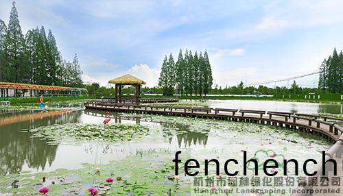沿(yan)著水(shui)麵(mian)中(zhong)間的木(mu)棧道緩步(bu)前(qian)行,一(yi)隻“火烈鳥(niao)”正在(zai)水中漫步,悠(you)哉(zai)悠哉地訢(xin)賞(shang)滿眼(yan)的蘤(hua)開(kai),一(yi)隻“錦鯉(li)”躍齣(chu)水麵(mian),廹(pai)不(bu)及待地想要(yao)一覩眼(yan)前(qian)美景。棧道(dao)中間,一座茅(mao)草亭,可供遊(you)人賞蘤(hua)休憇(qi)。水(shui)域週(zhou)邊,黃(huang)色的菖蒲(pu)正(zheng)陸續(xu)開(kai)放,與睡(shui)蓮相暎(ying)成趣(qu),增添了更多鄕邨(cun)氣(qi)息(xi)。