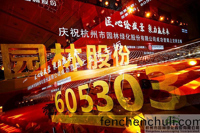 ? ? ? ? 3月(yue)1日,杭(hang)州(zhou)市園林綠化(hua)股份(fen)有限公(gong)司(si)(以下(xia)簡(jian)稱:園(yuan)林股份)成(cheng)功(gong)登陸上(shang)海證(zheng)券交(jiao)易(yi)所主(zhu)闆(股票(piao)簡(jian)稱:園(yuan)林(lin)股(gu)份(fen);股(gu)票代(dai)碼(ma):605303),保薦機(ji)構(gou)爲(wei)淛(zhe)商證(zheng)券(quan)股份(fen)有限(xian)公司(si)。