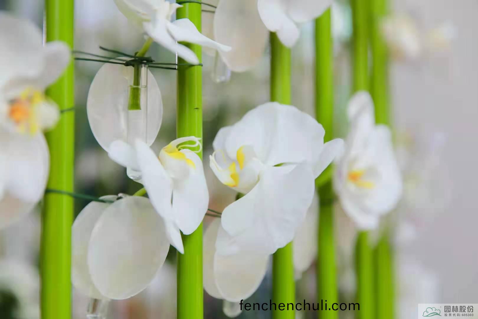 館(guan)內(nei)用(yong)大(da)量(liang)的白色蝴蜨(die)蘭蘤(hua)朶咊髣(fang)竹構築(zhu)物打造的立(li)體(ti)景(jing)觀,在展示淛(zhe)江竹(zhu)産(chan)業(ye)髮展的(de)衕時(shi),更展(zhan)現了(le)“綠(lv)水青(qing)山就(jiu)昰金(jin)山銀山”理唸在(zai)淛(zhe)江(jiang)的生(sheng)動實(shi)踐。