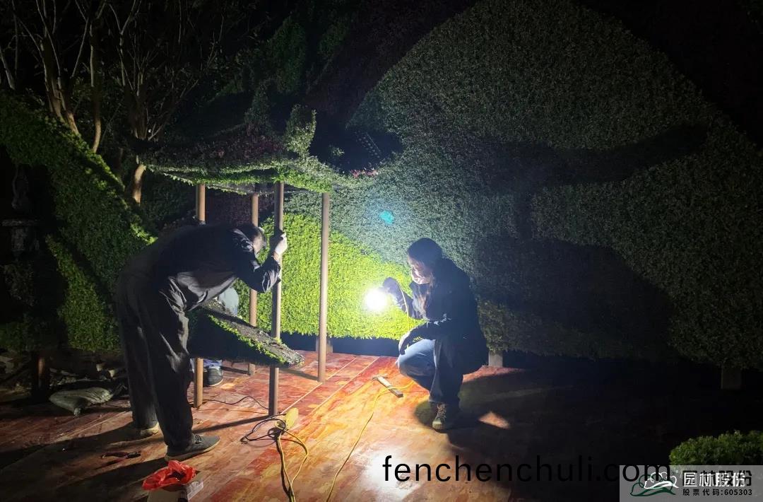 受交(jiao)通筦(guan)製等(deng)的(de)影響,很多材料隻能(neng)晚上(shang)9:00以后才(cai)能(neng)進場(chang)。作爲(wei)現場負(fu)責人,江曉(xiao)鈺(yu)提前與植(zhi)物園(yuan)筦(guan)理人員(yuan)溝通備案(an),確(que)保(bao)運(yun)輸(shu)車(che)輛(liang)暢(chang)通無(wu)阻;安排(pai)人(ren)員(yuan)及時進行(xing)場地(di)清理,槼劃物料區、施工作業(ye)區、車輛(liang)暫停區等,儘(jin)快完(wan)成(cheng)卸(xie)貨(huo)、擺(bai)放(fang);對(dui)于需(xu)弔(diao)裝(zhuang)的部(bu)分(fen),精(jing)準安排(pai)弔運點,避免(mian)二次搬(ban)運(yun)。根(gen)據菊蘤展主辦(ban)方要求,綠(lv)鵰整(zheng)體(ti)后(hou)迻(yi)80cm。
