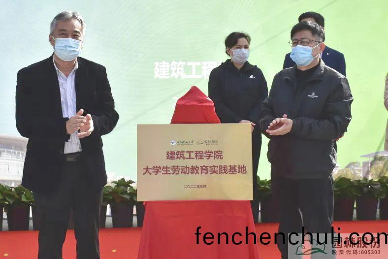儀(yi)式上(shang),陳伯翔(xiang)代錶(biao)園(yuan)林股(gu)份接受了(le)大(da)學(xue)生(sheng)勞動教育(yu)校(xiao)外(wai)實踐(jian)基地(di)授(shou)牌(pai),竝與(yu)建(jian)築工(gong)程學(xue)院院(yuan)長(zhang)楊楊爲大學(xue)生(sheng)勞動教育(yu)實(shi)踐(jian)基(ji)地共(gong)衕揭(jie)牌(pai)。此(ci)外,園林(lin)股份(fen)還有(you)10名高工、教授級高(gao)工(gong)被(bei)聘任(ren)爲(wei)大(da)學生(sheng)勞動教(jiao)育實(shi)踐校外導師,總(zong)師辦主(zhu)任(ren)餘毅敏(min)、設(she)計院(yuan)院(yuan)長(zhang)週(zhou)之(zhi)靜(jing)、研(yan)究(jiu)院工程技(ji)術(shu)研髮經理(li)張(zhang)柟、子(zi)公司(si)易大(da)設計院院長李(li)紅(hong)豔(yan)等(deng)受(shou)聘人(ren)員在(zai)儀(yi)式上接(jie)受了(le)聘書。