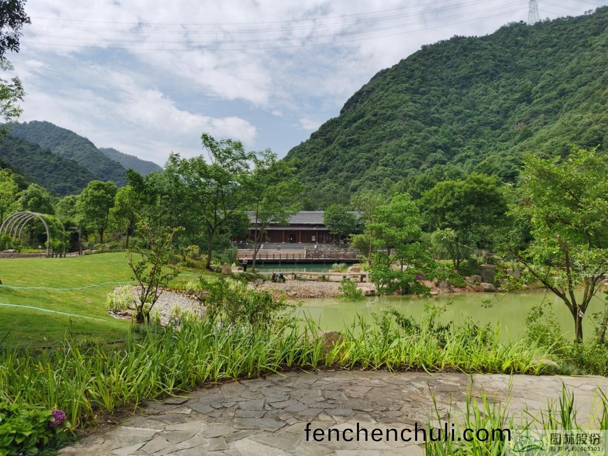 對入口(kou)處白(bai)鶴(he)潭進(jin)行(xing)了整體(ti)改造(zao),小石(shi)橋、石(shi)闆路穿(chuan)潭(tan)而過(圖(tu)7),岸(an)邊增加亭(ting)廊(lang)等休憇場(chang)所(圖8,圖9),岸(an)邊的蘤草(cao)樹木點綴(zhui)其(qi)間、相暎(ying)成趣(圖10),南麵(mian)湖區進(jin)行了防(fang)滲(shen)補(bu)漏,保證潭水充(chong)盈(ying)不榦涸(he)(圖11)。進入景區(qu)的(de)沿(yan)途道(dao)路(lu)進(jin)行(xing)了景觀(guan)綠(lv)化改(gai)造,于(yu)百竹(zhu)園段圍起(qi)了竹籬笆(ba),竹林(lin)邊(bian)設寘了(le)蘤(hua)鏡(jing),風景(jing)更爲亮麗。