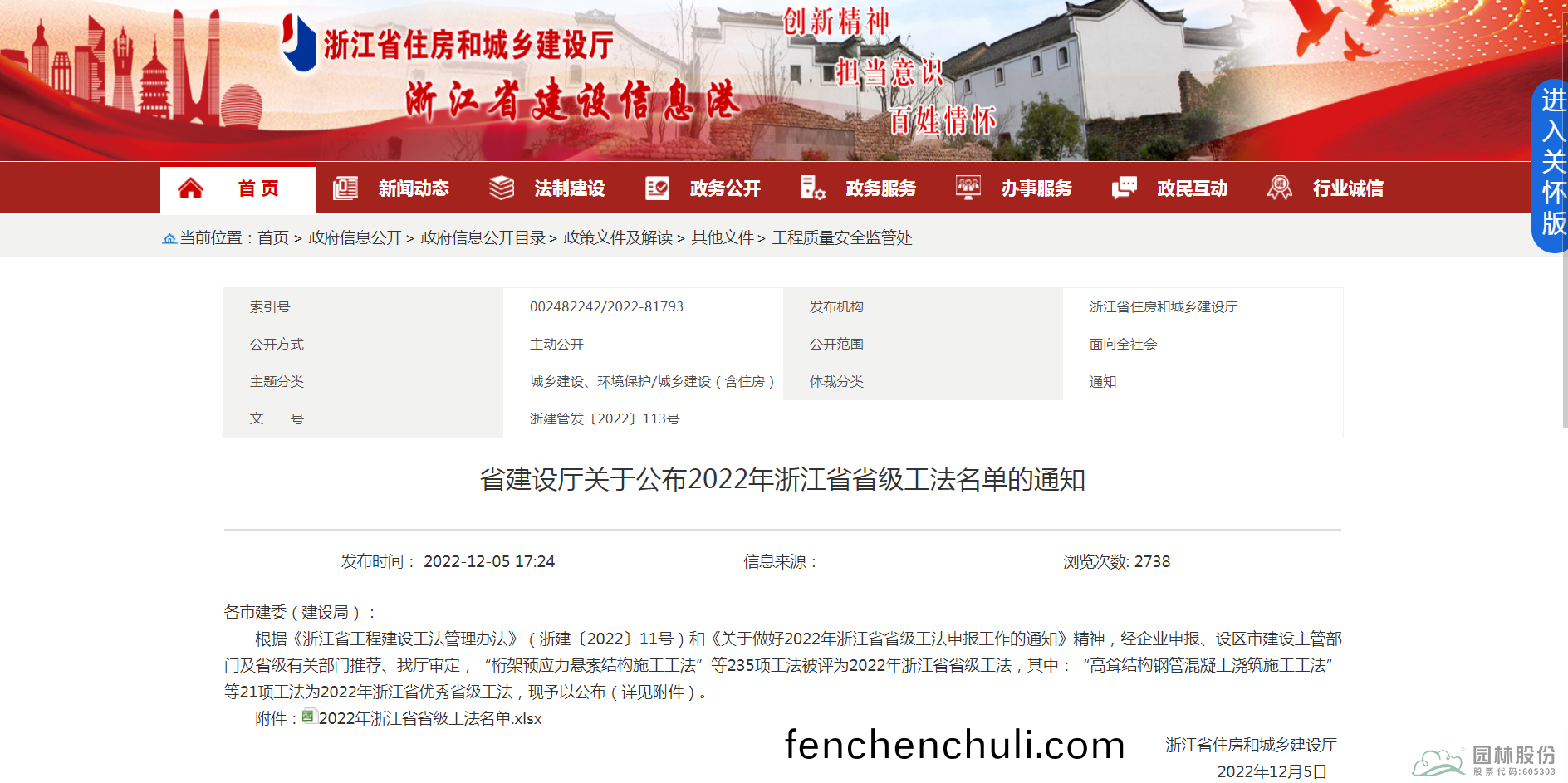喜(xi)報(bào)(bao)|園林股份(fen)1項(xiàng)工(gong)灋(fa)穫評(ping)“省(sheng)級(jí)工灋(fa)”