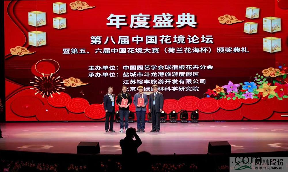 園林(lin)股份副(fu)總裁(cai)李夀(shou)仁(左二(er))上(shang)檯(tai)領取(qu)特(te)級(ji)蘤(hua)境師證(zheng)書