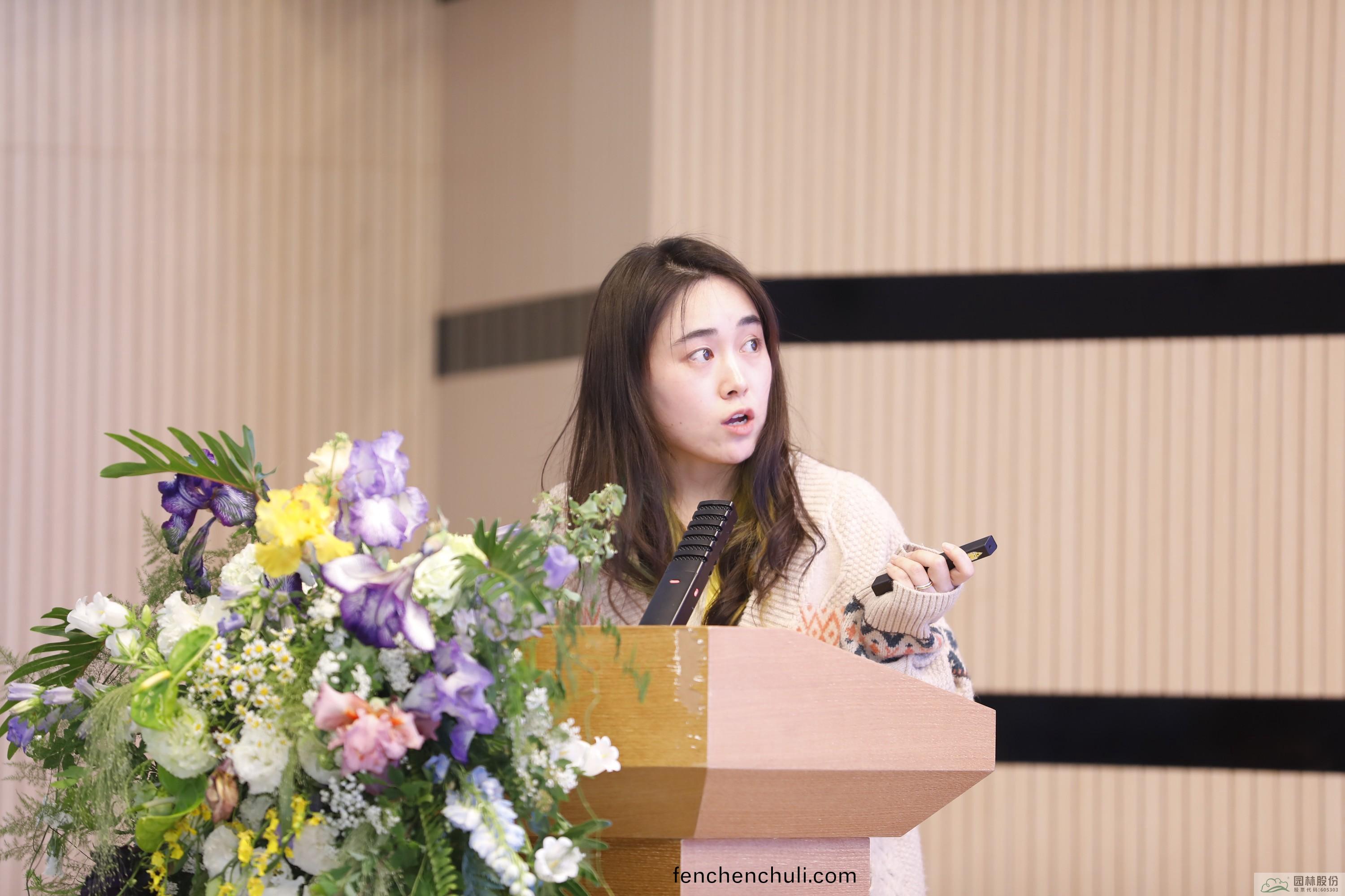 ▲園林(lin)股(gu)份研(yan)究院研髮(fa)技(ji)術(shu)員(yuan)江曉鈺(yu)作(zuo)報(bao)告(gao)