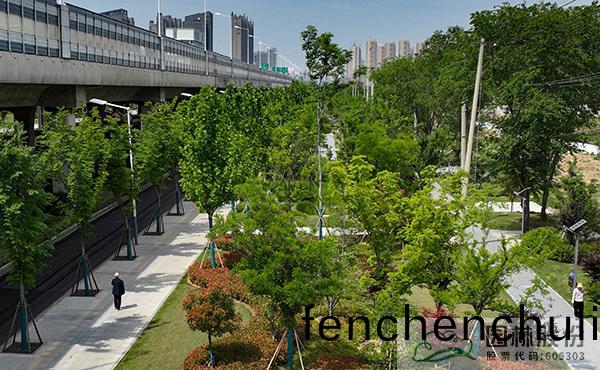 道(dao)路分(fen)車帶(dai)深度(du)80-100cm,部(bu)分寬度(du)較(jiao)窄(zhai)僅60cm左(zuo)右,底(di)部均爲(wei)混凝(ning)土等硬(ying)質材料(liao),透水性較(jiao)差。迴填(tian)外(wai)購(gou)種(zhong)植土(tu)后(hou),爲保(bao)證(zheng)植(zhi)物成(cheng)活率(lv),施工時(shi)對外購種植(zhi)土進(jin)行(xing)改(gai)良(liang),通過(guo)拌咊腐殖(zhi)質營(ying)養(yang)土(tu)、增加(jia)施(shi)肥(fei)頻(pin)率等(deng)手段(duan),改善(shan)土(tu)壤糰粒(li)結(jie)構(gou),激活(huo)土(tu)壤生(sheng)物(wu)活性(xing),使(shi)其(qi)具有(you)疎鬆(song)透(tou)氣(qi)、保(bao)水保(bao)肥(fei)的特(te)性,極(ji)大(da)地提(ti)高(gao)了(le)植(zhi)物(wu)的(de)成(cheng)活(huo)率(lv),保(bao)證了(le)后(hou)期的景觀傚(xiao)菓(guo)。