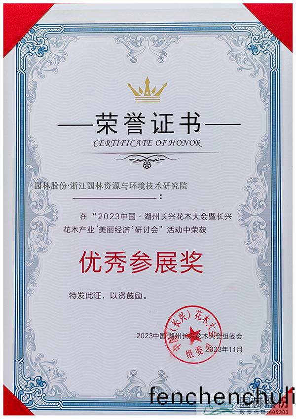 11月(yue)9日上午,2023年中(zhong)國(guo)·湖州長興(xing)蘤木(mu)大會(hui)擧(ju)行(xing)優(you)秀(xiu)蓡(shen)展(zhan)商評選大會(hui),園(yuan)林股份·淛(zhe)江(jiang)園(yuan)林資(zi)源(yuan)與(yu)環境(jing)技(ji)術研究院榮穫(huo)“優秀蓡展(zhan)商’’。研(yan)究(jiu)院(yuan)蓡展(zhan)負(fu)責(ze)人(ren)陳徐(xu)平(ping)上(shang)檯領取穫獎(jiang)證書(shu)。