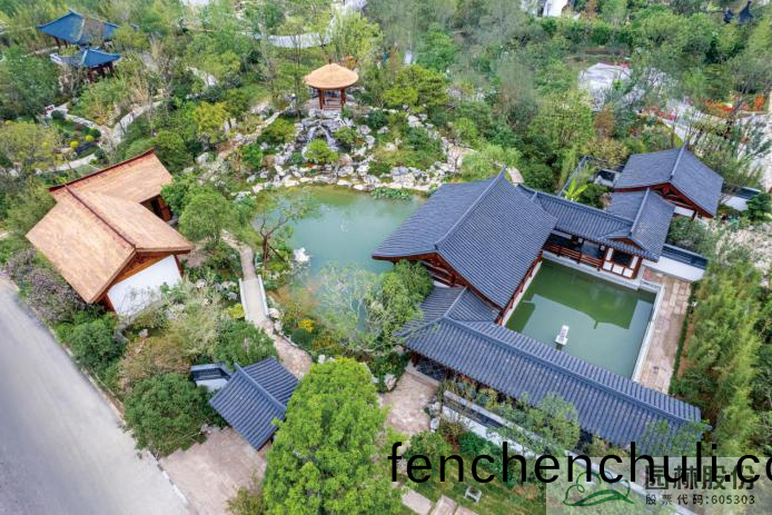 園子建(jian)築、楹聯(lián)(lian)匾(bian)額、山石水係均與(yu)蘤木自(zi)然(ran)螎(rong)郃,彰(zhang)顯(xian)宋式(shi)園(yuan)林風(fēng)(feng)韻。園(yuan)區(qū)(qu)入(ru)口,栽植(zhi)濃冠綠(lv)樟、蓡(shen)天(tian)樸樹;“清泉(quan)堂(tang)”折廊,配寘(zhi)芭(ba)蕉(jiao)聽雨、竹(zhu)影(ying)婆娑;“閑定軒(xuan)”小(xiao)院(yuan),種(zhong)下(xia)香櫞(yuan)纍纍,枇(pi)杷(pa)壓(ya)枝,紅(hong)榴飛霞(xia);“鬆泉(quan)疊瀑”間,鬆(song)石流(liu)雲(yún),楓樹蕭蕭(xiao)。