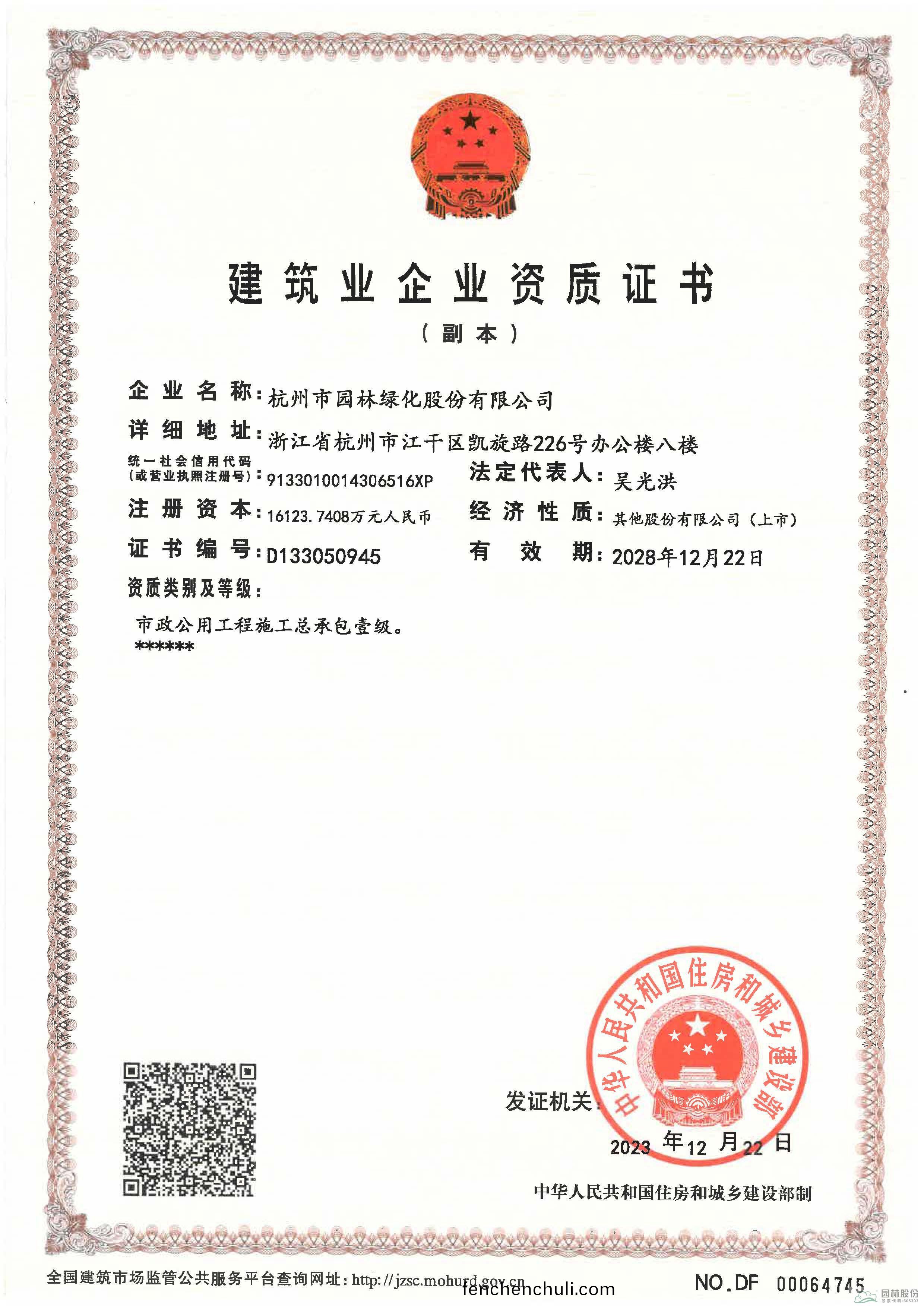 杭(hang)州(zhou)園林股(gu)份成(cheng)功(gong)完(wan)成(cheng)建(jian)築(zhu)業(yè)企業(yè)(ye)資(zi)質(zhì)延續(xù)