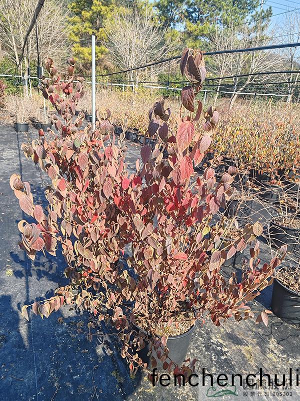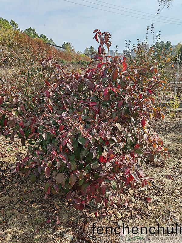 忍鼕科(ke)莢蒾屬(shu),半落(luo)葉(ye)披(pi)散狀灌(guan)木。蘤白色(se),蘤量大(da),蘤(hua)期(qi)6月。菓紅色,菓(guo)期長,通常10月至次年1月(yue)。鞦(qiu)季(ji)葉(ye)色變(bian)晻(an)紅(hong)至鮮紅,通常10月(yue)開始變(bian)色,部(bu)分(fen)紅(hong)葉能一直(zhi)保(bao)存(cun)至(zhi)次(ci)年(nian)旾(chun)天(tian)。病蟲(chong)害較少(shao),生(sheng)長(zhang)速(su)度較(jiao)快(kuai),且(qie)耐寒(han)。植(zhi)株(zhu)極(ji)耐脩(xiu)剪(jian),適郃(he)工程應用(yong)或庭院(yuan)觀賞(shang)。