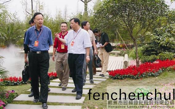 2005年10月,時任(ren)淛江省副(fu)省長茅(mao)臨生、時任(ren)淛江省林業廳原廳長(zhang)陳鐵(tie)雄(xiong)蓡觀第(di)六(liu)屆(jie)蘤愽(bo)會室(shi)外(wai)展(zhan)示(shi)——“諧(xie)苑(yuan)”